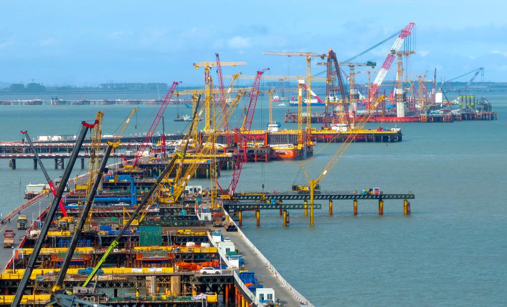這是廈金大橋(廈門段)海上橋梁大規(guī)模裝配化施工現(xiàn)場(無人機照片,2025年6月13日攝)。新華社記者 魏培全 攝