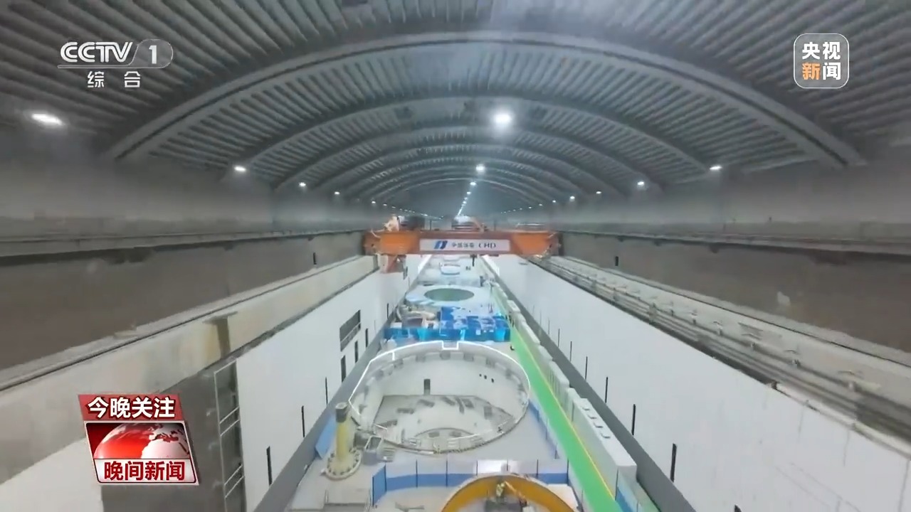 水電站究竟是如何發(fā)電的?記者身后就是發(fā)電機組最關(guān)鍵部件之一的轉(zhuǎn)輪,澎湃的高壓水流從190米的高處沖擊下來,推動轉(zhuǎn)輪高速旋轉(zhuǎn)。它1分鐘通過的水量近2萬立方米,能夠灌滿大概8個標準游泳池,可滿足超過4萬個三口之家一年的用電需求。