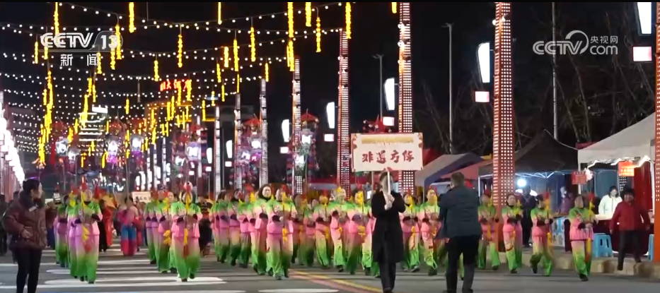 向舞臺(tái)走去的是非遺方陣從前到后分別是錢桿舞、花燈戲,以及高矮人舞這三個(gè)節(jié)目都是余慶當(dāng)?shù)氐馁F州省級(jí)非遺。每當(dāng)逢年過(guò)節(jié)的時(shí)候,當(dāng)?shù)厝罕姸紩?huì)打扮一番來(lái)到街頭,向周圍的觀眾們送去節(jié)日的祝福。