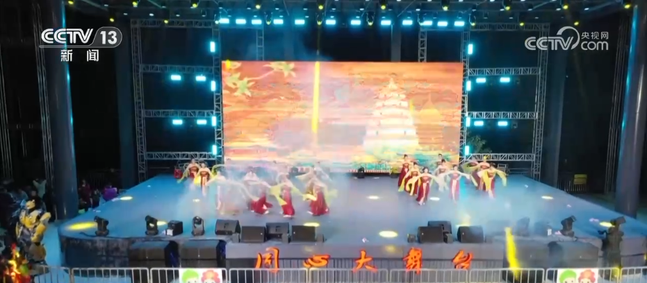 賞完了冰雕霧凇,大家可能已經(jīng)聽到了現(xiàn)場(chǎng)熱鬧的音樂(lè)聲,此刻,迎接新年的預(yù)熱演出已經(jīng)開場(chǎng),演員們身著藏族服飾跳起歡快的鍋莊舞,舞蹈和歌聲中滿是對(duì)新年的喜悅與期待。