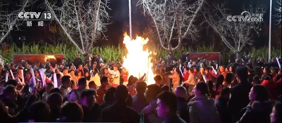 隨著絢爛的焰火騰空而起,當(dāng)晚的活動(dòng)也迎來(lái)了最高潮。演員們走下舞臺(tái),和上千名觀眾一起圍繞篝火舞蹈狂歡,滿懷憧憬迎接新年。
