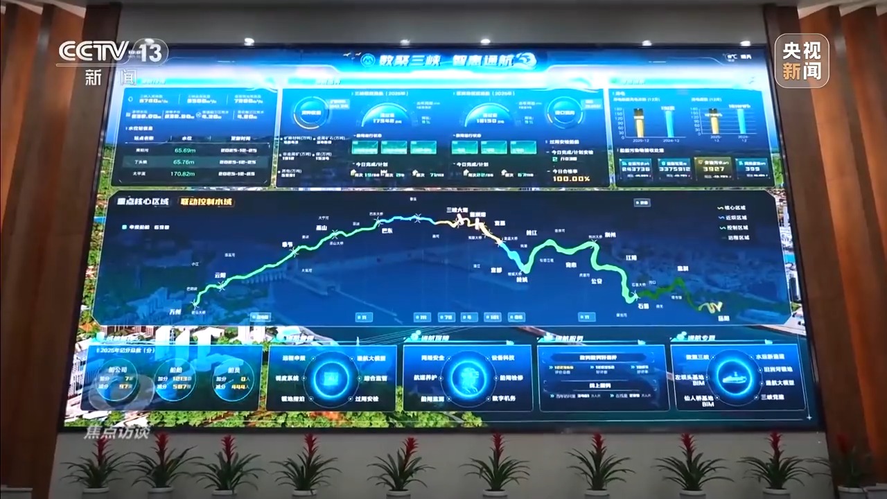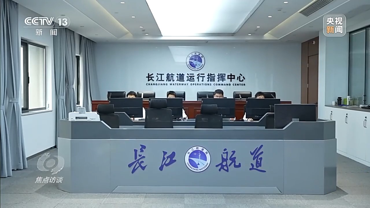 這里有智能化水上交通管控系統(tǒng),面對川流不息的九股船流,記者看到指揮現(xiàn)場忙而不亂,三個屏幕分別顯示實(shí)時的智慧海事數(shù)字信號、監(jiān)控視頻、無人機(jī)視頻,每一道指令和提醒都發(fā)布得準(zhǔn)確及時。