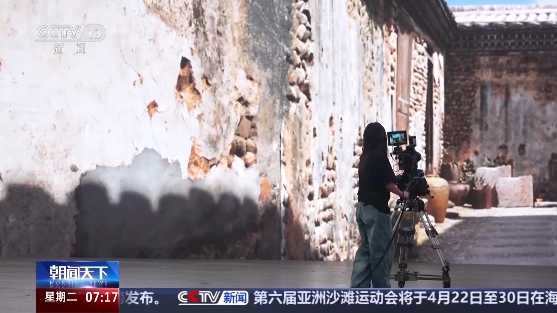 總臺(tái)央視記者 楊理天:這里是一座恐龍博物館,恐龍模型栩栩如生??铸埻蝗粡堥_大嘴,視覺效果非常震撼。不過,轉(zhuǎn)眼間,我就來到了故宮,下一秒,故宮飄起了雪花。地點(diǎn)一鍵切換,天氣瞬間變化,這就是最新的電影虛擬拍攝技術(shù)帶來的神奇體驗(yàn)。