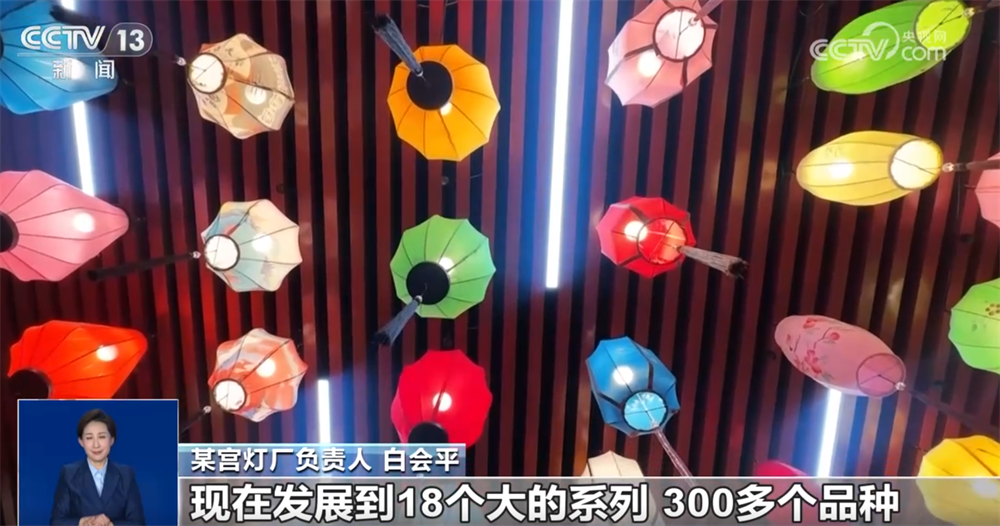 某宮燈廠負(fù)責(zé)人 白會(huì)平:通過跟大專院校合作,研發(fā)新的產(chǎn)品,每年都得有一個(gè)新的突破。現(xiàn)在我們國潮風(fēng)的燈籠特別受年輕消費(fèi)群體的喜歡。原來我們是單一的幾個(gè)品種,現(xiàn)在發(fā)展到18個(gè)大的系列、300多個(gè)品種,而且根據(jù)客戶的要求還可以量身定做。