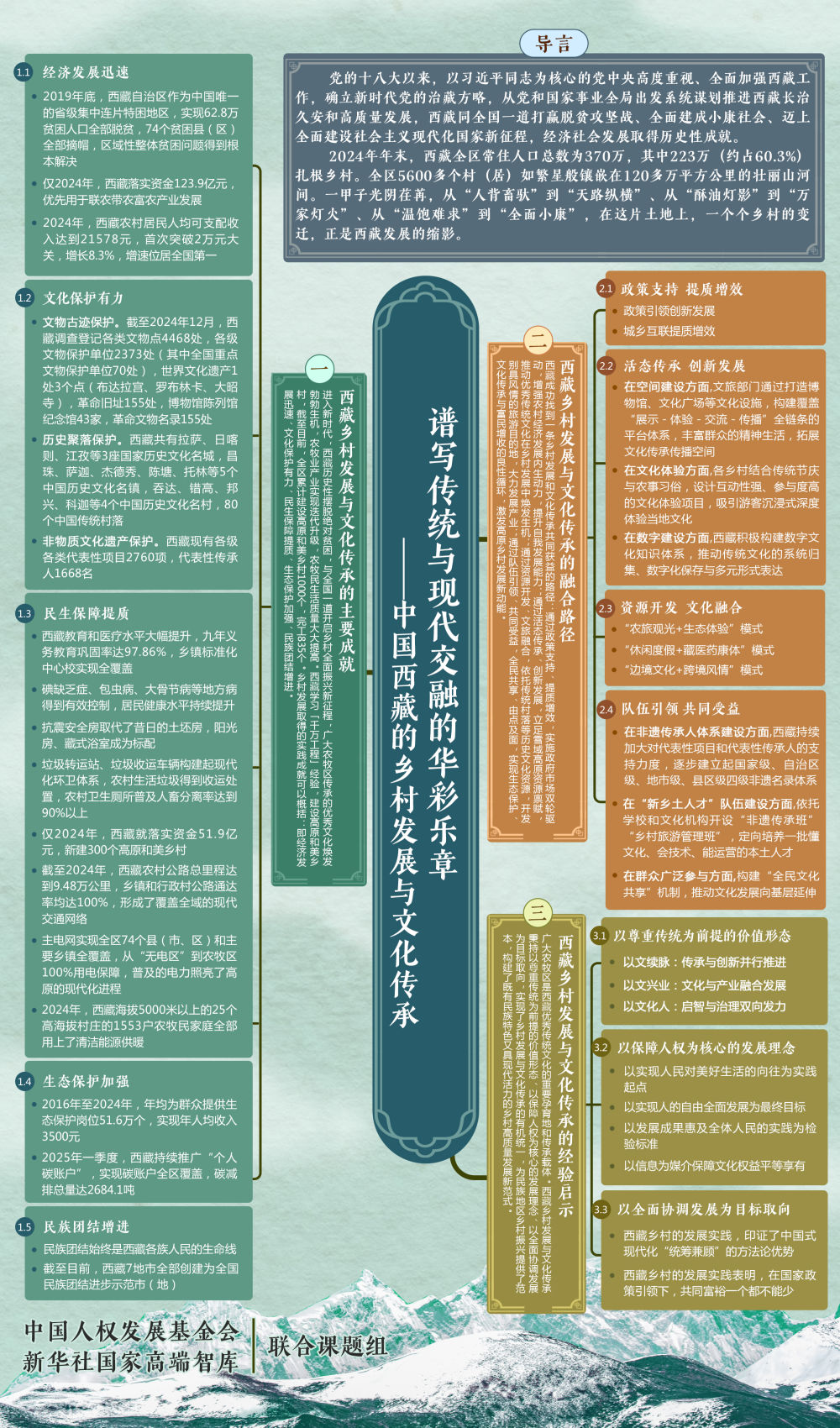 思維導(dǎo)圖來(lái)了!一圖了解《譜寫(xiě)傳統(tǒng)與現(xiàn)代交融的華彩樂(lè)章——中國(guó)西藏的鄉(xiāng)村發(fā)展與文化傳承》智庫(kù)報(bào)告