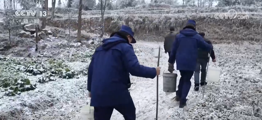 自1月19日出現(xiàn)低溫天氣以來,印江縣沙子坡鎮(zhèn)天星村已被冰雪覆蓋兩天,最低氣溫降至-5℃。該村16個(gè)村民組均位于海拔900米以上的山區(qū),日常生活用水依靠36口水池集中供應(yīng)。持續(xù)低溫導(dǎo)致通往村民家的供水管道凍結(jié),同時(shí)村內(nèi)道路結(jié)冰,村民生活用水受到影響。得知這一情況后,當(dāng)?shù)劓?zhèn)村干部與消防站人員迅速組成抗凝凍應(yīng)急隊(duì),前往水池取水并挑送至村民家中。