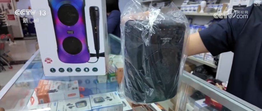 在南非首都開(kāi)普敦的一家中國(guó)商品批發(fā)城里,顧客絡(luò)繹不絕。一款集收音機(jī)、燈光、移動(dòng)電源等為一體的多功能藍(lán)牙音箱格外受歡迎。