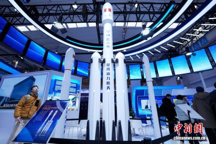 圖為觀眾在星河動(dòng)力航天展館了解可重復(fù)使用液體運(yùn)載火箭模型。 中新社記者 張祥毅 攝