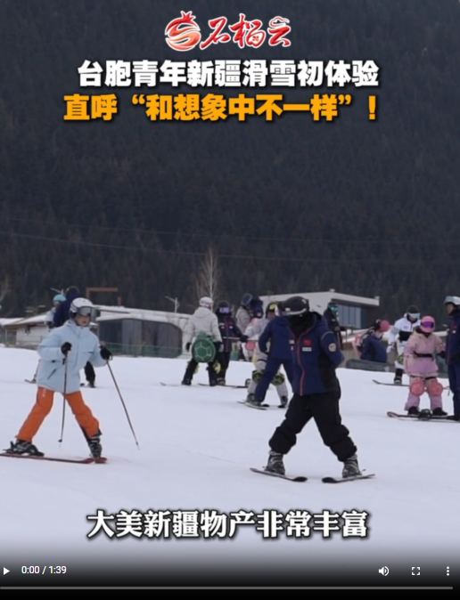 1月24日,全國(guó)臺(tái)聯(lián)第三十二屆臺(tái)胞青年冬令營(yíng)新疆分營(yíng)的23名臺(tái)胞青年,走進(jìn)絲綢之路山地度假區(qū),在沉浸式體驗(yàn)中,感受冰雪運(yùn)動(dòng)的獨(dú)特魅力。臺(tái)胞青年們?cè)趯I(yè)滑雪教練指導(dǎo)下安全暢快滑雪,他們表示新疆與想象不同,發(fā)展迅速,尤其喜愛當(dāng)?shù)孛朗撑c歷史文化,希望更多臺(tái)灣民眾前來親身感受,促進(jìn)兩岸交流。