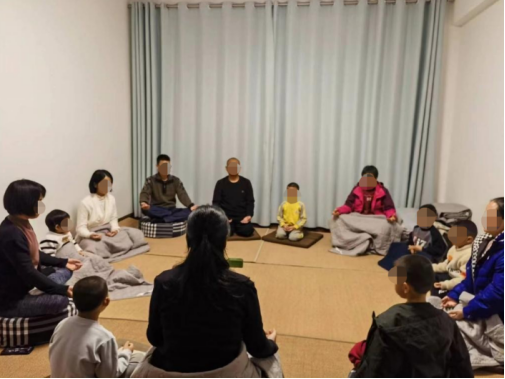 家長帶著孩子參加“乾源文化”打坐練功