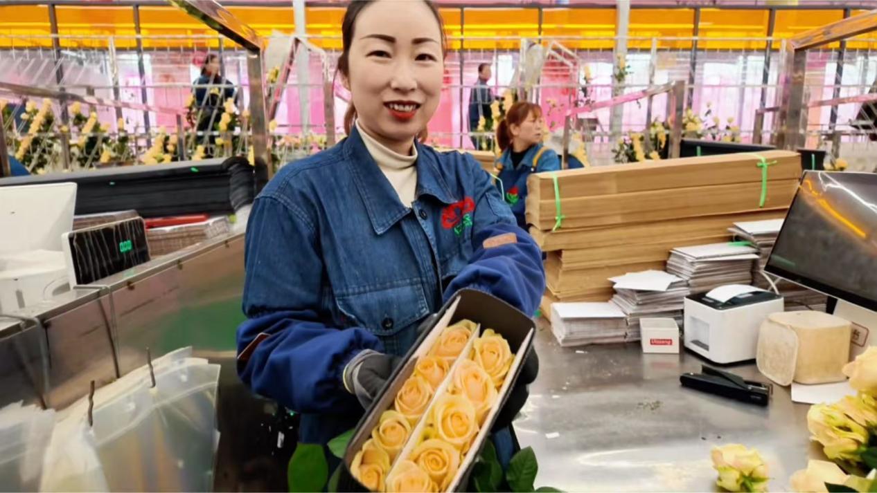 經(jīng)她們之手,高原玫瑰通過冷鏈物流,走向全國(guó)各地乃至海外。這讓張婷婷格外自豪:“我包的花有一天竟然能到國(guó)外。他們捧著它的時(shí)候,會(huì)是什么心情?會(huì)不會(huì)很開心?”