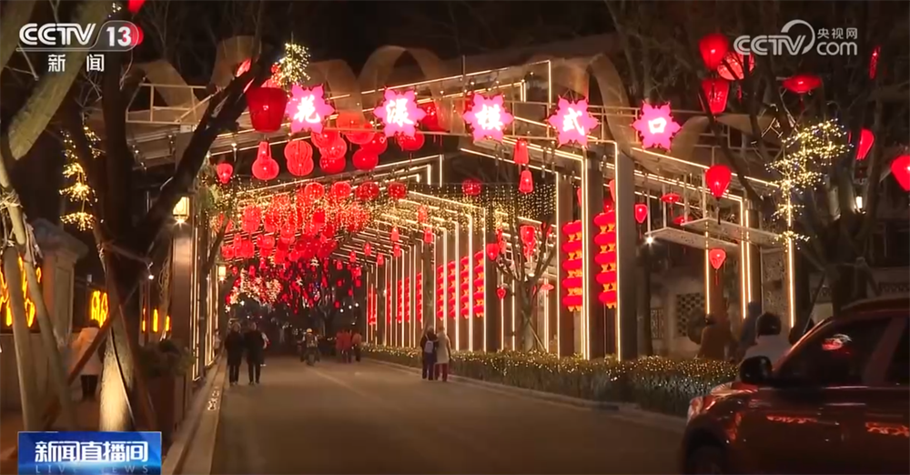 模式口新春燈會共設(shè)置打造了十二組特色景觀,“笑臉映春”等各具特色的主題花燈交錯點(diǎn)綴,將整條長街裝點(diǎn)成一條流動的燦爛燈河。游客們賞燈、打卡拍照,沉浸其中。