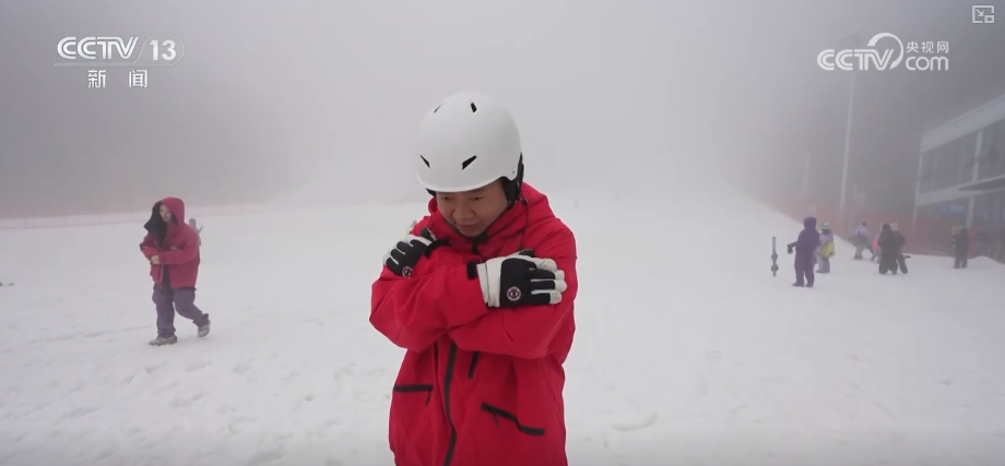 在這也和大家分享幾個知識點,教練表示,學習滑雪的第一步就是學會安全摔倒和站起。比如向后摔倒時,雙手迅速交叉抱在胸前,頭埋下去,之后先用臀部做緩沖,再把力量順勢轉移到背部,就能安全摔倒不受傷。注意手不能直接撐地,也要避免摔倒后腦勺。