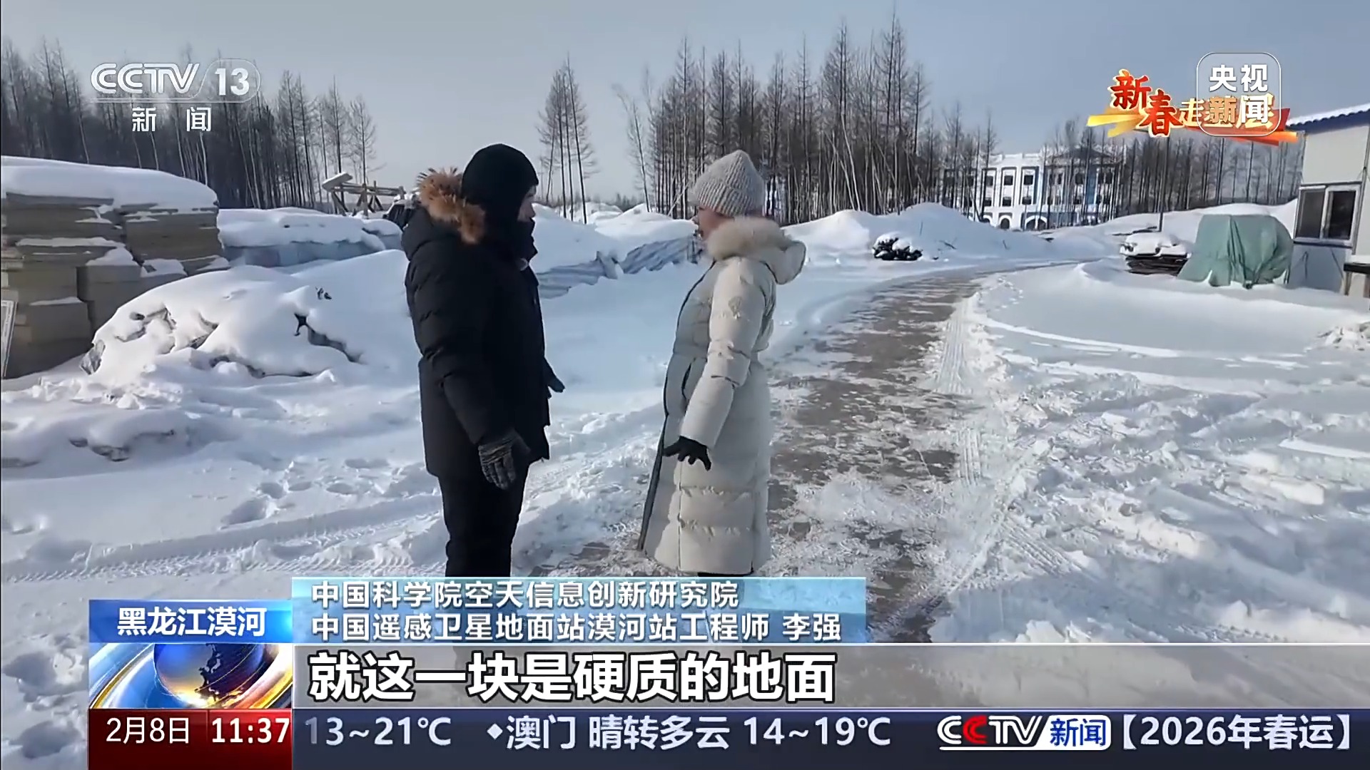 坐落在茫茫雪地里的漠河站,承擔(dān)著25顆國(guó)家陸地觀測(cè)衛(wèi)星的數(shù)據(jù)接收任務(wù)。不久前它的投入使用,讓我國(guó)衛(wèi)星數(shù)據(jù)接收范圍拓展了400萬(wàn)平方公里。在零下三十多攝氏度的天氣里,給巨大的白色天線罩除雪是這里每天的第一場(chǎng)戰(zhàn)斗。