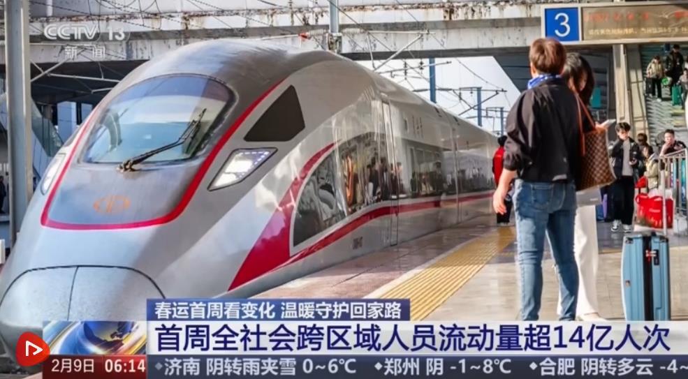 2026年春運(yùn)2月2日拉開(kāi)帷幕,到2月9日是第八天。據(jù)此前綜合研判的數(shù)據(jù),在今年春運(yùn)40天的時(shí)間里,全社會(huì)跨區(qū)域人員流動(dòng)量將會(huì)達(dá)到95億人次,預(yù)計(jì)創(chuàng)歷史新高。數(shù)據(jù)顯示,春運(yùn)首周,預(yù)計(jì)全社會(huì)跨區(qū)域人員流動(dòng)量累計(jì)超14億人次,日均超2億人次,比去年同期增長(zhǎng)2%。交通運(yùn)輸部預(yù)計(jì),2月14日前后將達(dá)到春節(jié)前客流峰值。