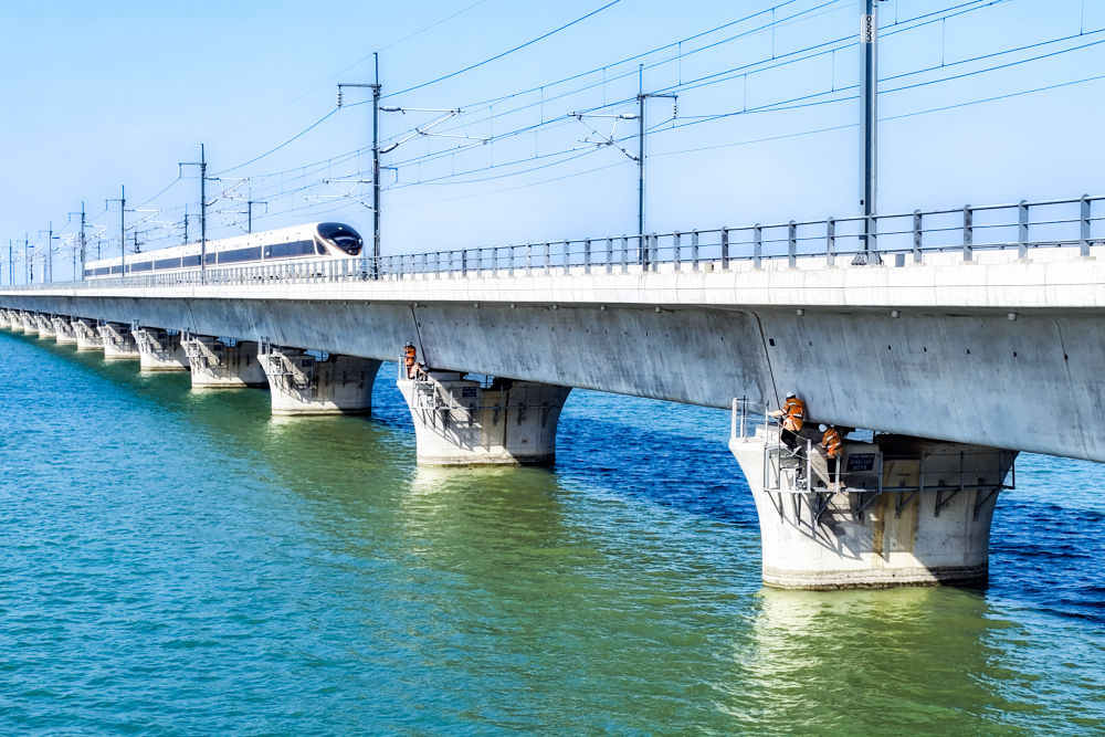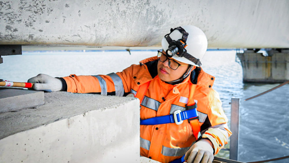 從踏上箱梁的那一刻起,他們就必須完成對212座高鐵橋梁、橋墩的巡視,對8000多顆高強(qiáng)度螺栓進(jìn)行敲擊檢查,為旅客和列車提供安全保障。