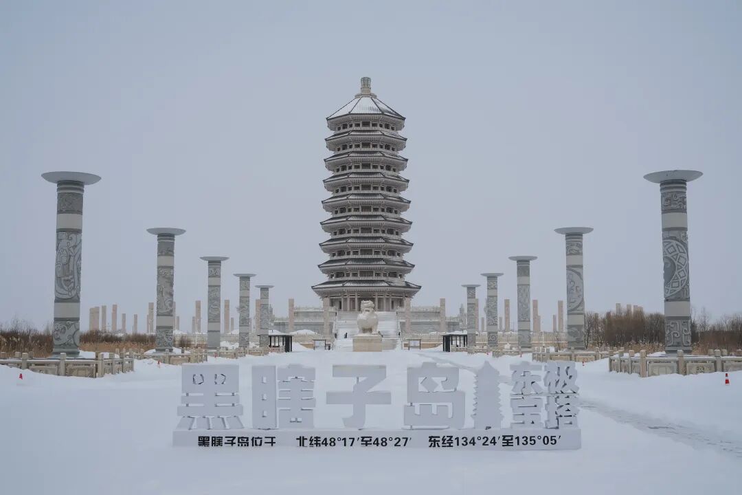 2月15日,位于黑龍江省佳木斯市撫遠市黑瞎子島東部極角的東極塔。經(jīng)濟日報記者朱雙健攝