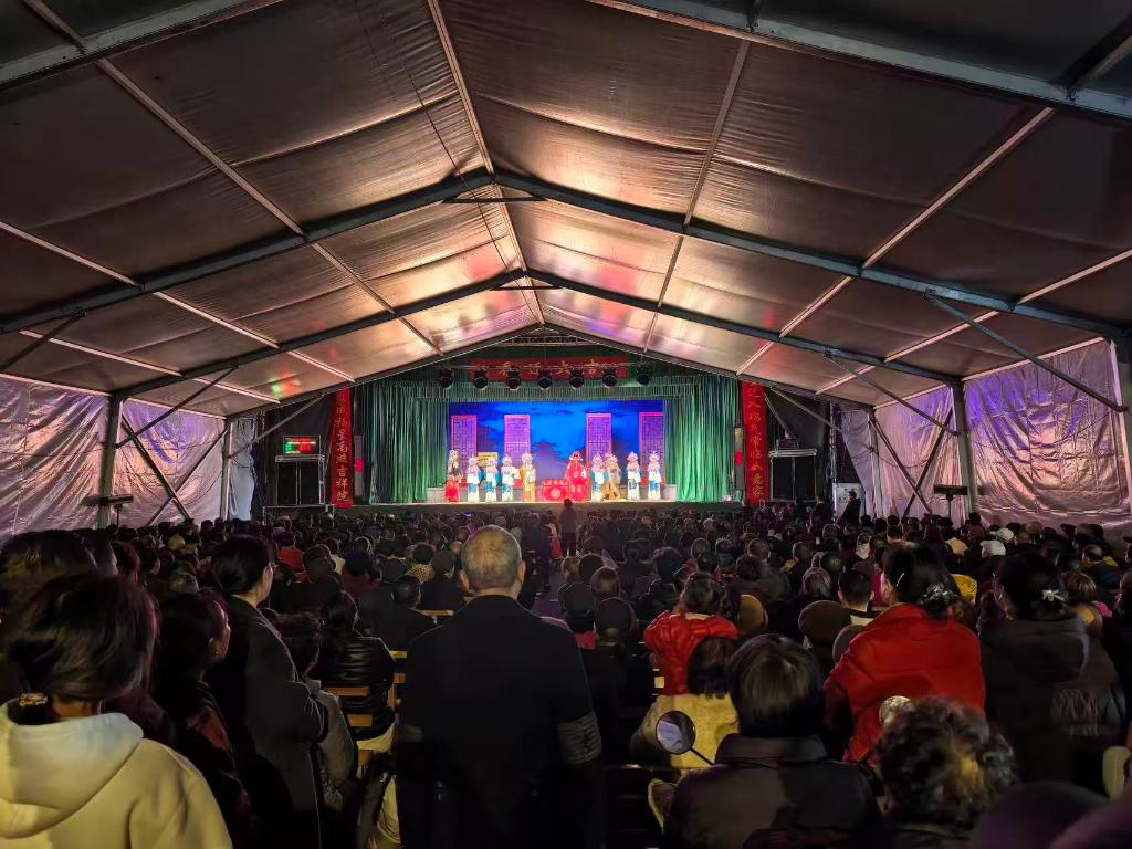 圖為2月21日晚上浙江省義烏市王高畈村的婺劇演出現(xiàn)場(chǎng)。(受訪者供圖)