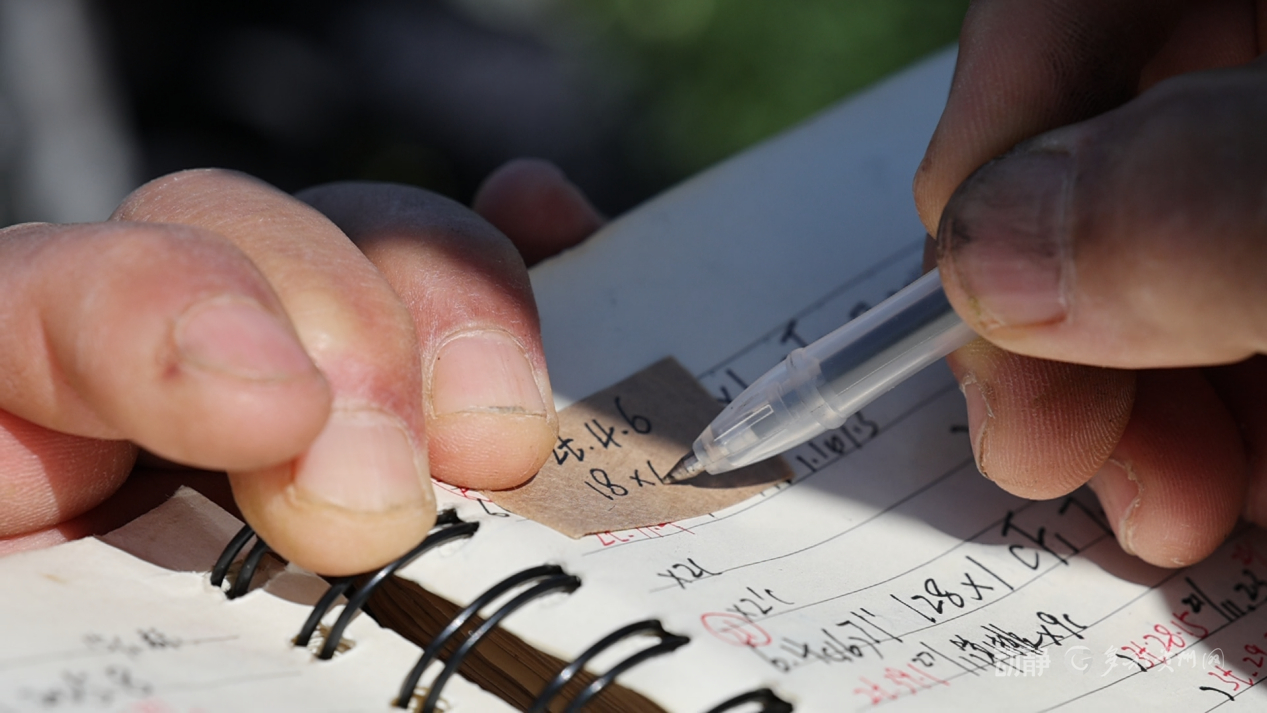 夜晚,當(dāng)田間工作暫歇,駐地的燈光又亮起?!爱?dāng)天采的果,我們一般都是晚上把它調(diào)查完,能更好地精準(zhǔn)定位組配的品種是什么性狀的,怎么來制定育種目標(biāo),今天要是不干完心里就慌慌的?!睏罴t說。測(cè)量、記錄、分析……這些數(shù)據(jù)又關(guān)乎著下一個(gè)良種的誕生。