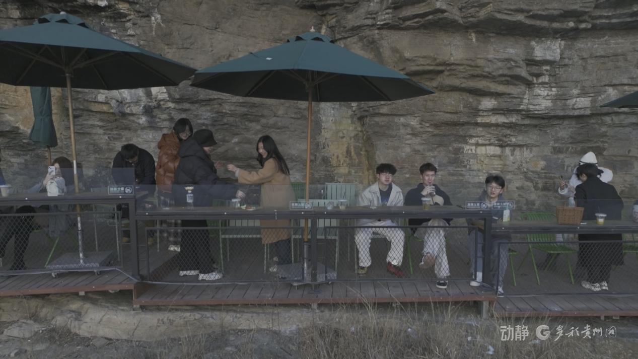 站在懸崖咖啡廳,腳下是150米垂直落差的喀斯特峽谷,建筑與青山融為一體,一杯熱咖啡,滿眼好風光。即便氣溫偏低,這里依舊人氣滿滿。