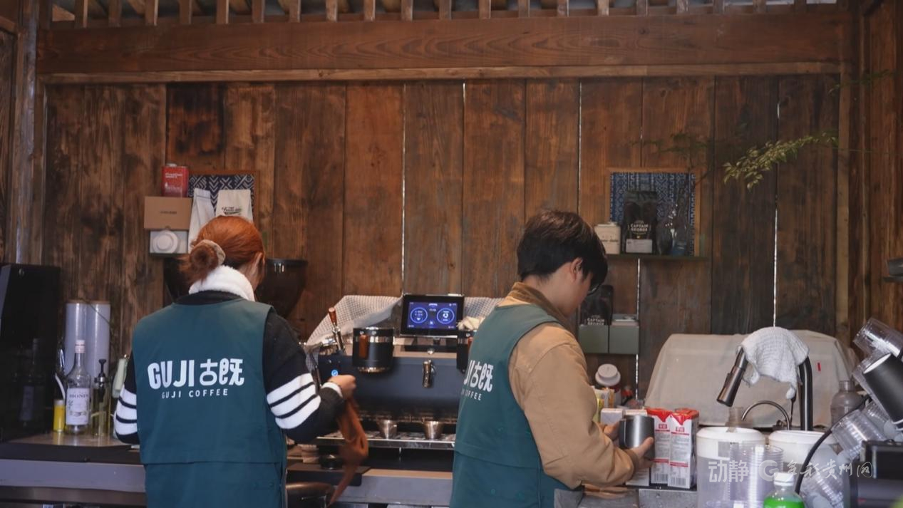 村民胡慧琴在家門口當上咖啡廳店員,包吃包住,工作愜意;