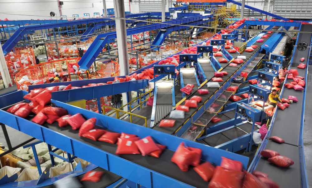 在江蘇南通一家國際物流園分揀中心,工作人員在分揀貨物(2023年12月20日攝,無人機照片)?!笆奈濉逼陂g,面對地緣政治風(fēng)險和貿(mào)易壁壘,我國以跨境電商、保稅維修、市場采購等為代表的新業(yè)態(tài)新模式助力各國消費者、生產(chǎn)者“買全球、賣全球”,成為穩(wěn)外貿(mào)的重要引擎。