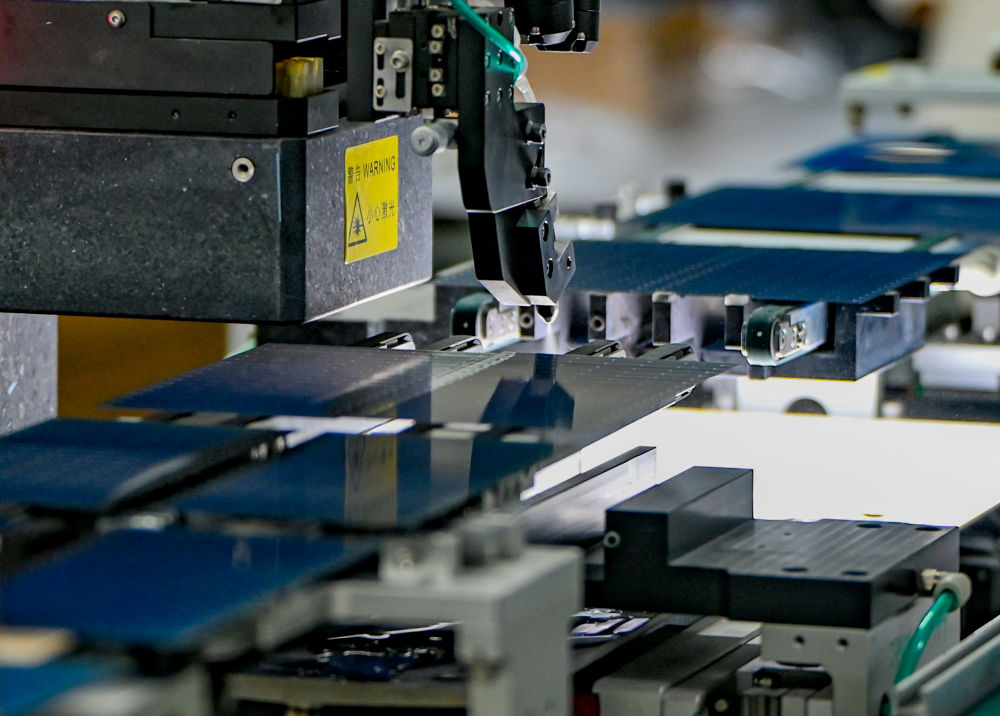 在新疆巴音郭楞蒙古自治州若羌縣一家新能源有限公司,全自動劃片機在切割光伏電池片(2025年9月22日攝)。“十四五”期間,電動汽車、光伏產(chǎn)品、鋰電池等“新三樣”產(chǎn)品2025年出口規(guī)模接近1.3萬億元,比2020年增長3.5倍。
