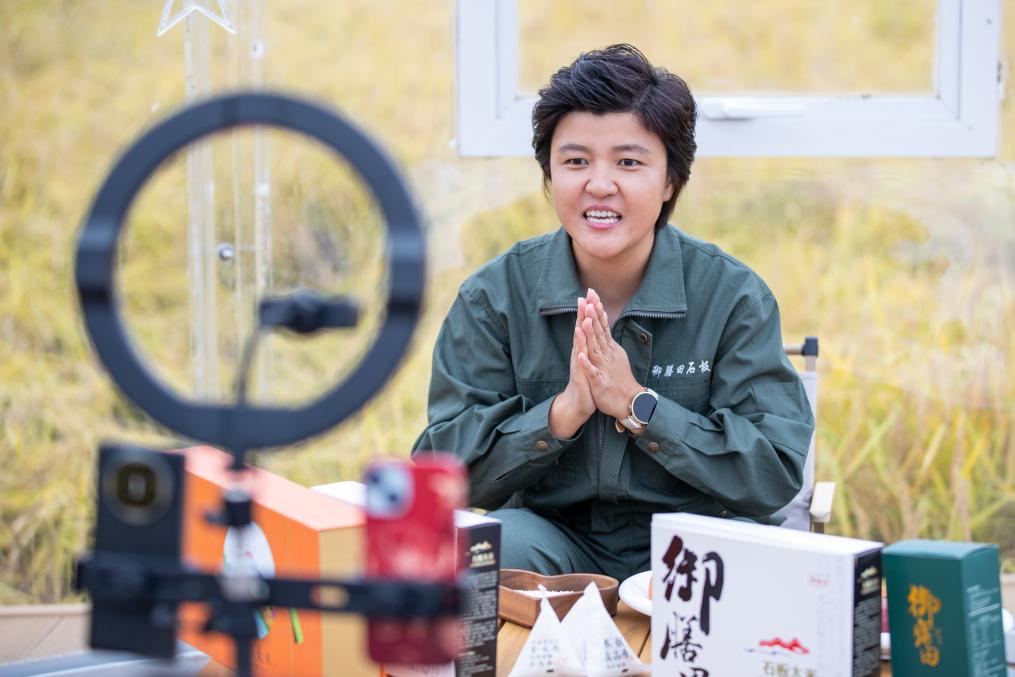 在黑龍江寧安市上官地村,陳雨佳在進行直播。新華社記者 張濤 攝