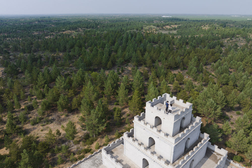 陜西榆林毛烏素治沙造林基地內(nèi)建設(shè)的人工林。新華社發(fā)