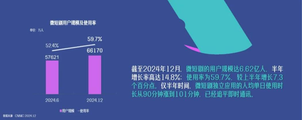 據(jù)《中國(guó)網(wǎng)絡(luò)視聽(tīng)發(fā)展研究報(bào)告(2025)》顯示,截至2024年12月,微短劇用戶規(guī)模達(dá)6.62億人,使用率為59.7%,市場(chǎng)規(guī)模突破500億元,2025年預(yù)計(jì)已破千億元。微短劇的爆發(fā)式增長(zhǎng)背后,關(guān)于內(nèi)容審核、未成年人保護(hù)、精品化發(fā)展的討論,正在兩會(huì)會(huì)場(chǎng)內(nèi)引發(fā)深度思考。