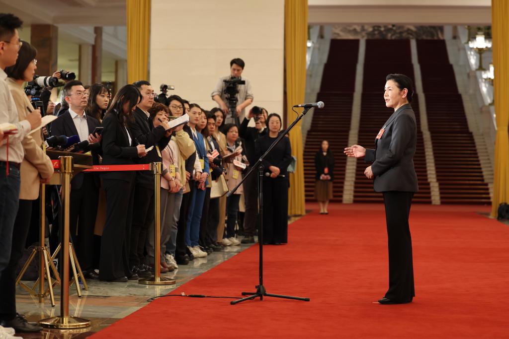 3月12日,第十四屆全國人民代表大會第四次會議第三場“部長通道”集中采訪活動在北京人民大會堂舉行。這是司法部部長賀榮接受媒體采訪。新華社記者 金立旺 攝