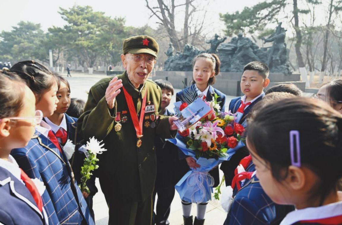 清明節(jié)臨近,全省各地開展“清明祭英烈”活動(dòng)。日前,沈陽市各界人士走進(jìn)沈陽抗美援朝烈士陵園,祭掃獻(xiàn)花,緬懷英雄?,F(xiàn)場(chǎng),92歲志愿軍老戰(zhàn)士金東輝為孩子們講述抗美援朝的英雄事跡。(遼寧日?qǐng)?bào)記者 趙敬東 攝)
