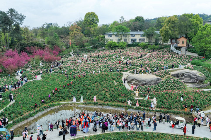 2026年3月22日,游客在重慶市巴南區(qū)二圣鎮(zhèn)集體村云林天鄉(xiāng)景區(qū)踏青游玩(無人機照片)。近年來,重慶市巴南區(qū)二圣鎮(zhèn)集體村依托云林天鄉(xiāng)景區(qū),發(fā)展都市休閑觀光農(nóng)業(yè),深入推進農(nóng)文旅深度融合發(fā)展,通過打造油菜花、金魚草等不同品種的四季高山花海主題景區(qū),實現(xiàn)從過去苗木基地“賣苗木”到鄉(xiāng)村旅游“賣景觀”的轉(zhuǎn)變,帶動村民增收致富。新華社記者 黃偉 攝