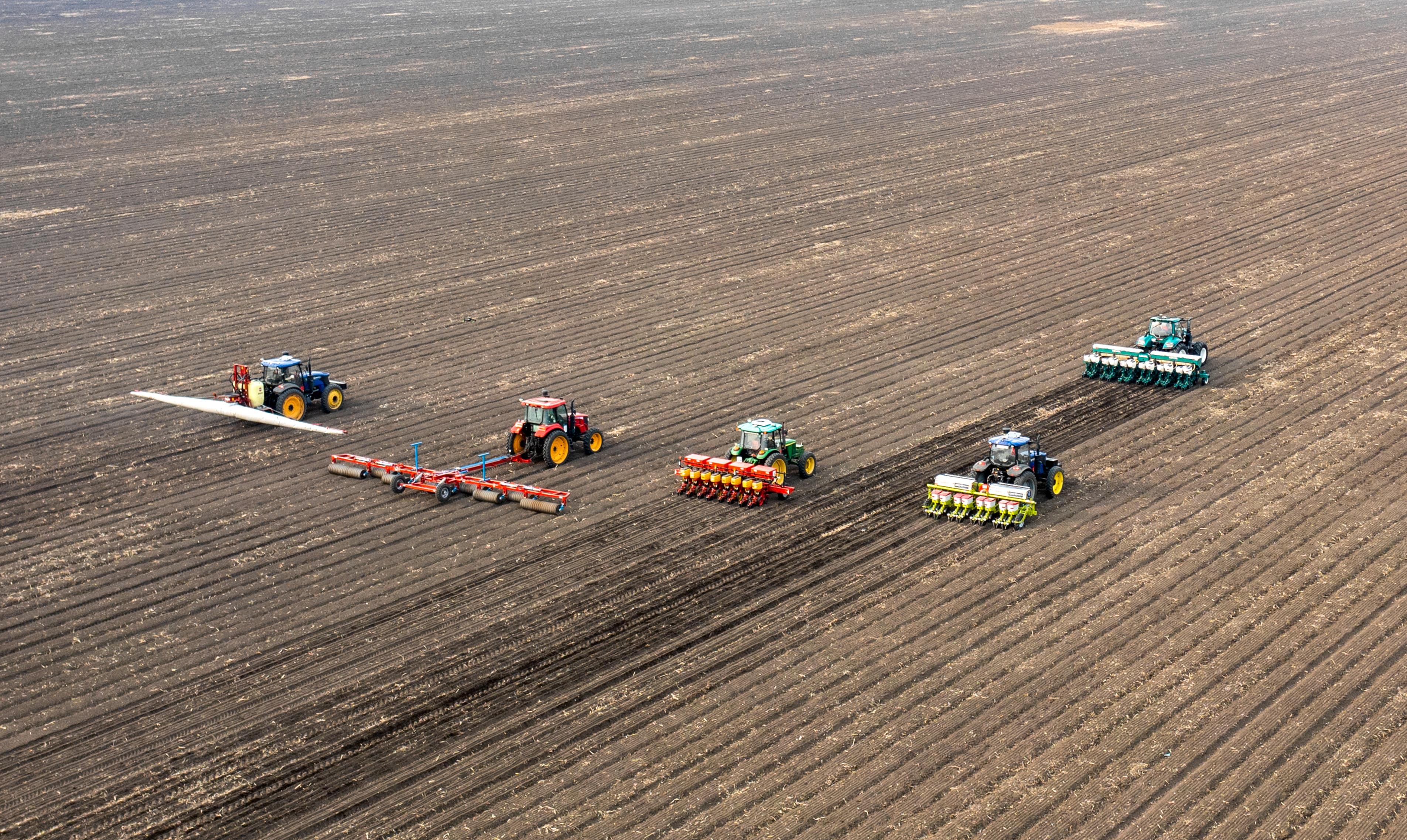 2023年春,黑龍江雙鴨山,北大荒農(nóng)業(yè)股份友誼分公司第五管理區(qū)玉米智能機械化作業(yè)播種現(xiàn)場。