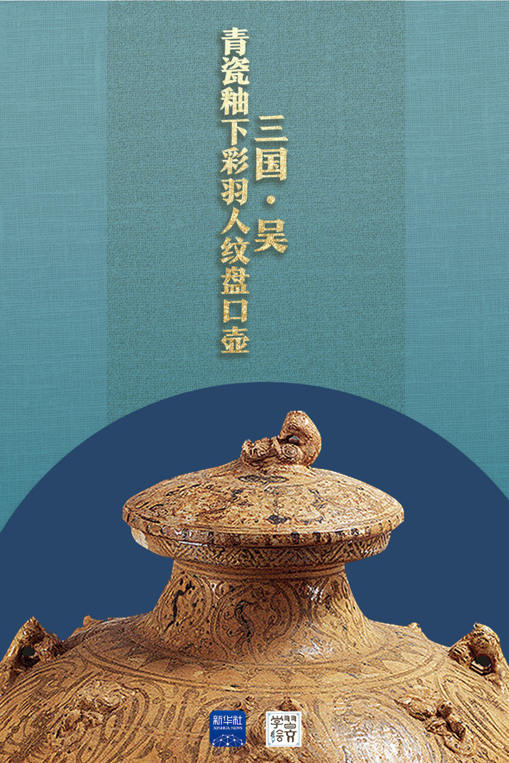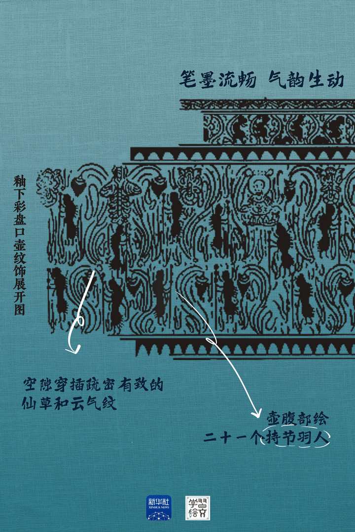 “這件藏于六朝博物館的青瓷釉下彩羽人紋盤口壺于1983年出土,精湛的釉下彩繪工藝,改變了人們對(duì)釉下彩工藝始于唐代的認(rèn)識(shí),把我國(guó)釉下彩繪工藝出現(xiàn)的時(shí)間提前了近五百年?!彼窝嗾f。