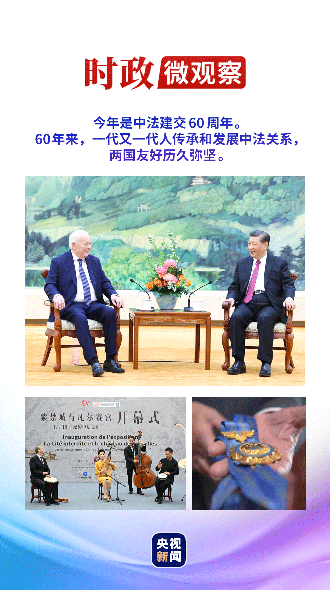 今年4月8日,再次會見中國人民這位老朋友,習近平主席撫今追昔:“60年來,一代又一代人傳承和發(fā)展中法關系,兩國友好歷久彌堅。中方珍視中法友誼,愿同法方進一步加強高層交往,密切交流合作,推動中法關系邁上更高水平?!?/p>