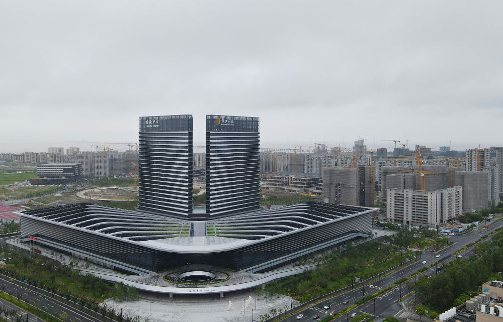 這是中國(上海)自由貿(mào)易試驗區(qū)臨港新片區(qū)滴水湖(無人機全景照片,2023年9月6日攝)。