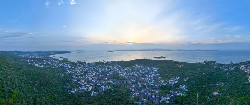 這是在江蘇省蘇州市吳中區(qū)東山鎮(zhèn)拍攝的太湖景色(2024年4月10日攝,無(wú)人機(jī)照片)。