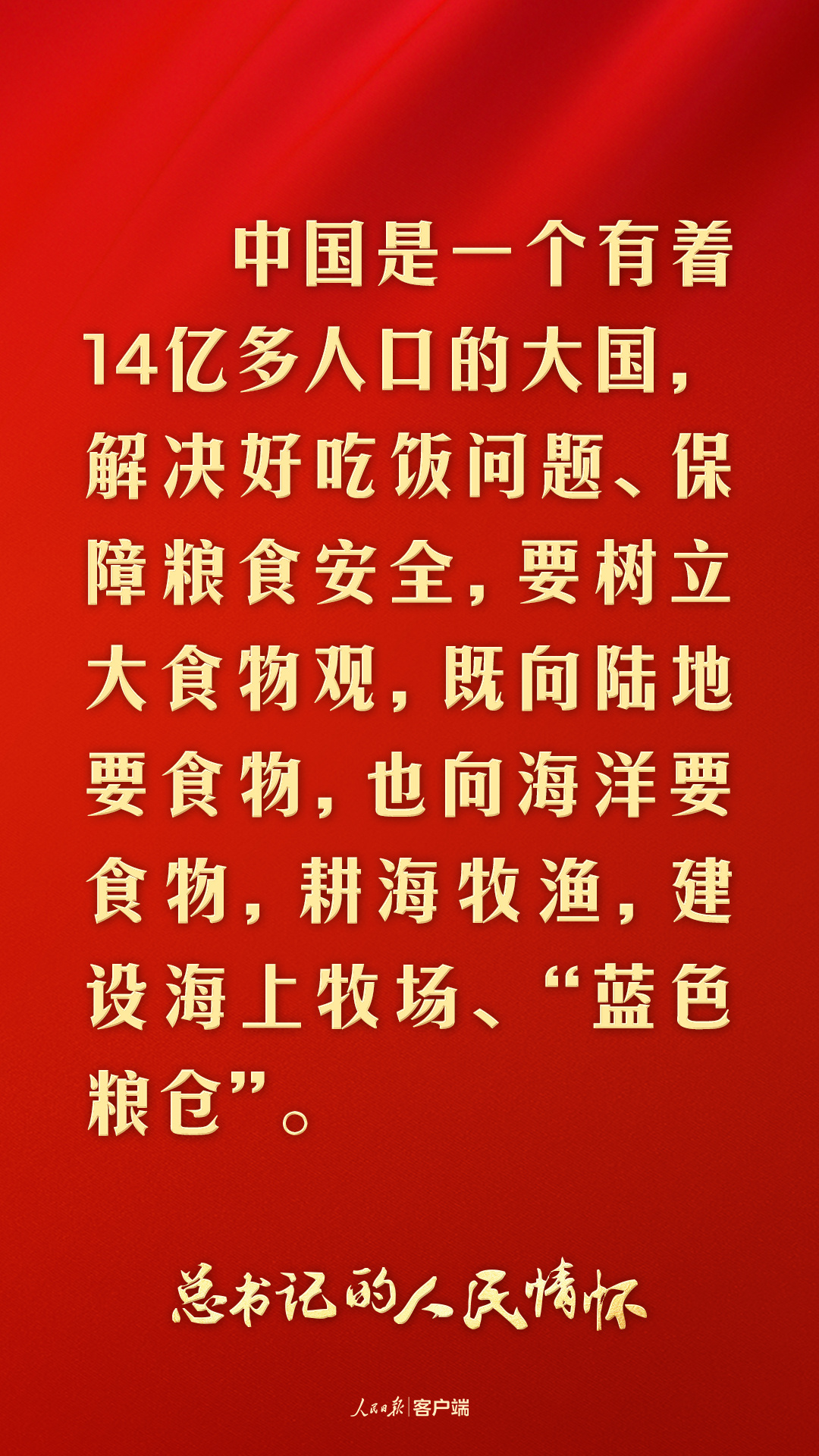 2023年4月,習(xí)近平總書記在廣東考察時(shí)指出:“解決好吃飯問題、保障糧食安全,要樹立大食物觀,既向陸地要食物,也向海洋要食物,耕海牧漁,建設(shè)海上牧場、‘藍(lán)色糧倉’。”