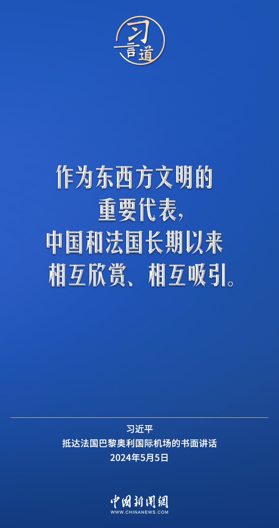 當(dāng)?shù)貢r間5月5日下午,國家主席習(xí)近平抵達巴黎,開始對法國進行國事訪問。在抵達法國巴黎奧利國際機場的書面講話中,習(xí)近平指出——