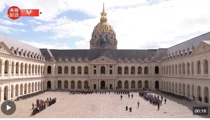 當(dāng)?shù)貢r(shí)間5月6日下午,在馬克龍陪同下,習(xí)近平檢閱法蘭西共和國(guó)衛(wèi)隊(duì)和陸海空三軍儀仗隊(duì)。