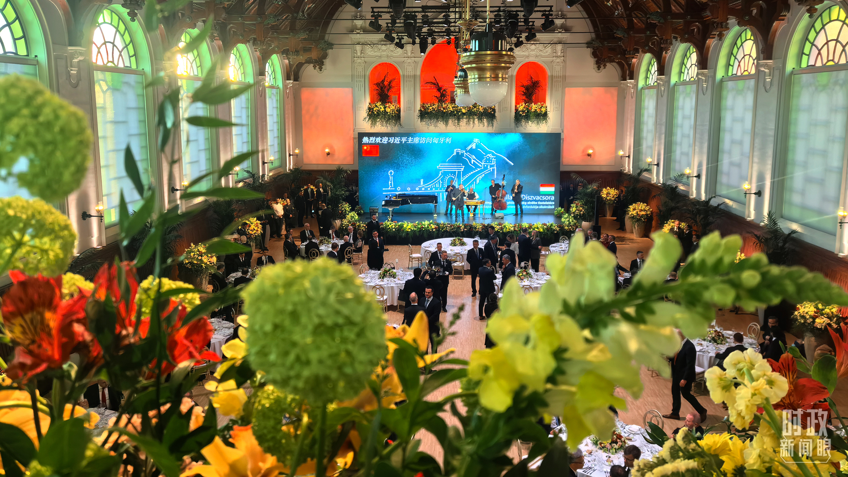 歡迎宴會現(xiàn)場花團(tuán)錦簇。(總臺央視記者楊波拍攝)