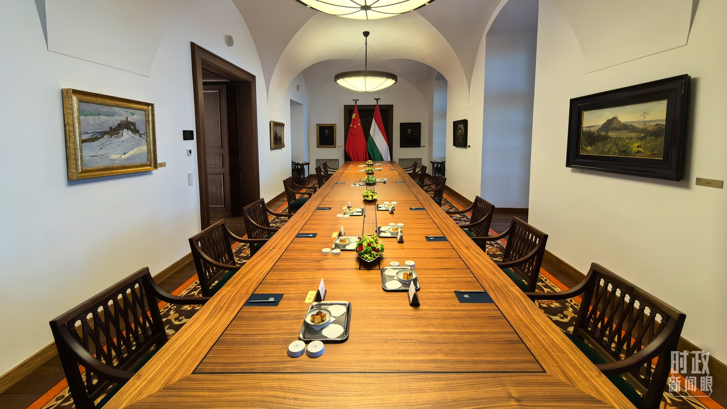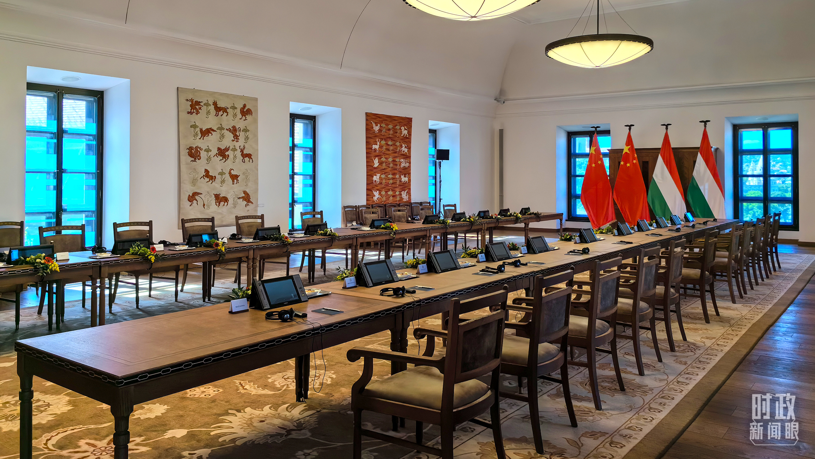 習(xí)主席和歐爾班總理在這里舉行大范圍會談。這是會談開始前的現(xiàn)場。(總臺央視記者陸泓宇拍攝)
