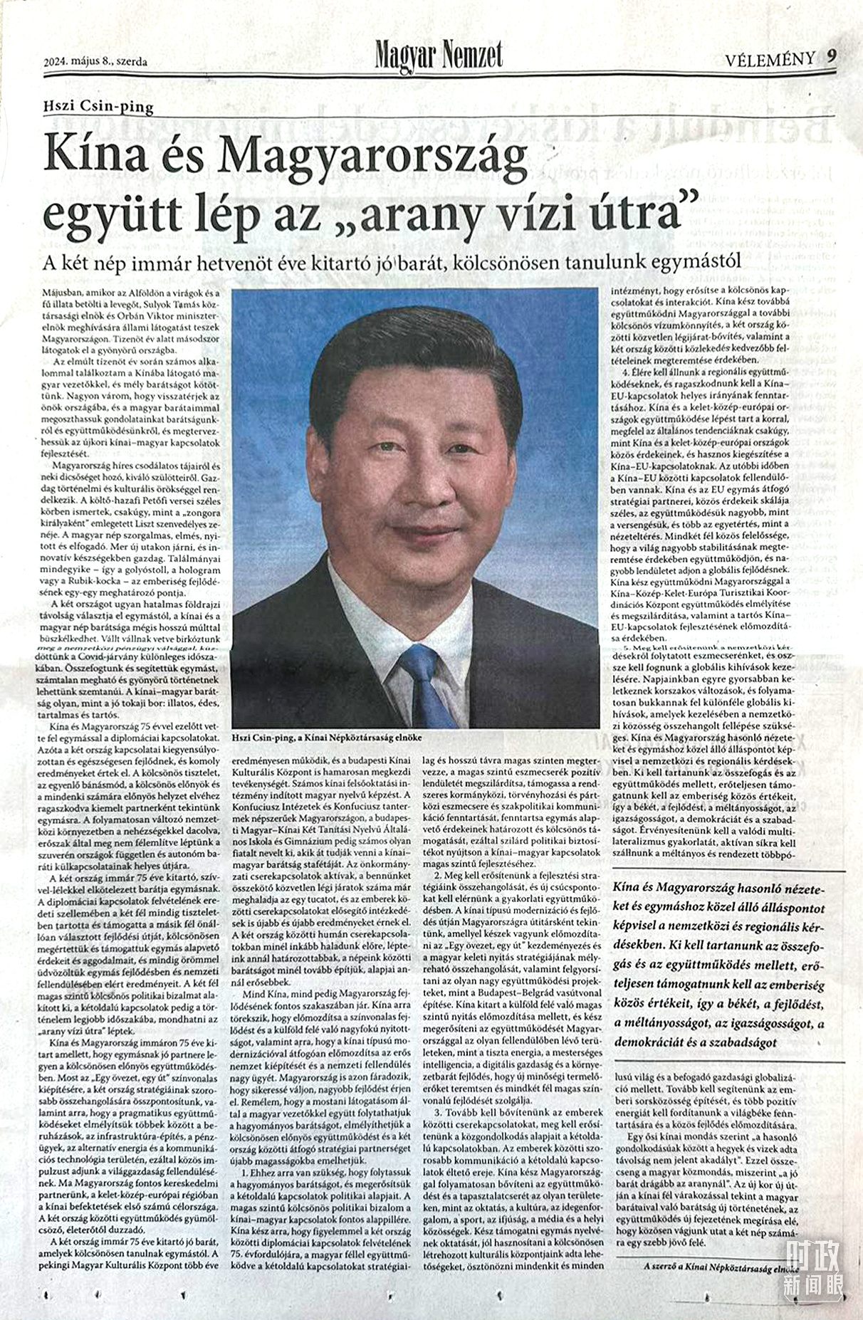 習(xí)主席在匈牙利《匈牙利民族報》發(fā)表的署名文章。(總臺記者沃龍拍攝)