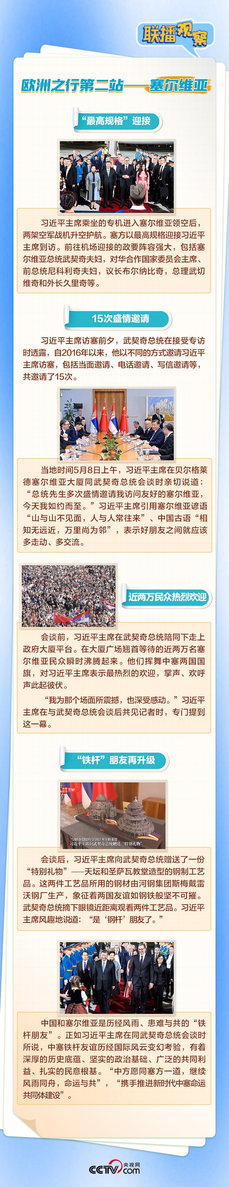 聯(lián)播+5月5日至10日,習(xí)近平主席對(duì)法國(guó)、塞爾維亞、匈牙利進(jìn)行國(guó)事訪問,這是習(xí)近平主席今年首次出訪,也是中國(guó)國(guó)家元首時(shí)隔5年再訪歐洲。