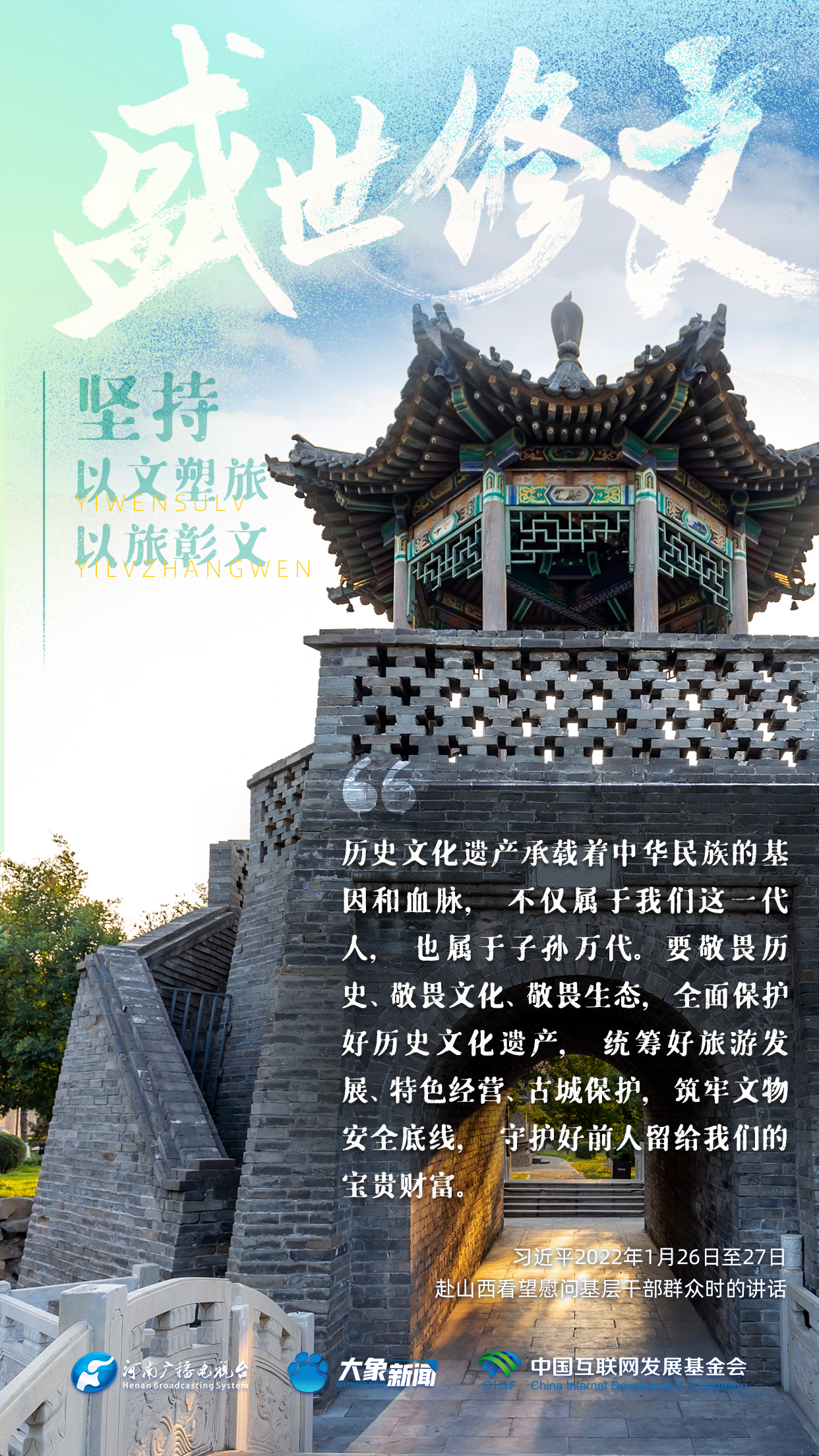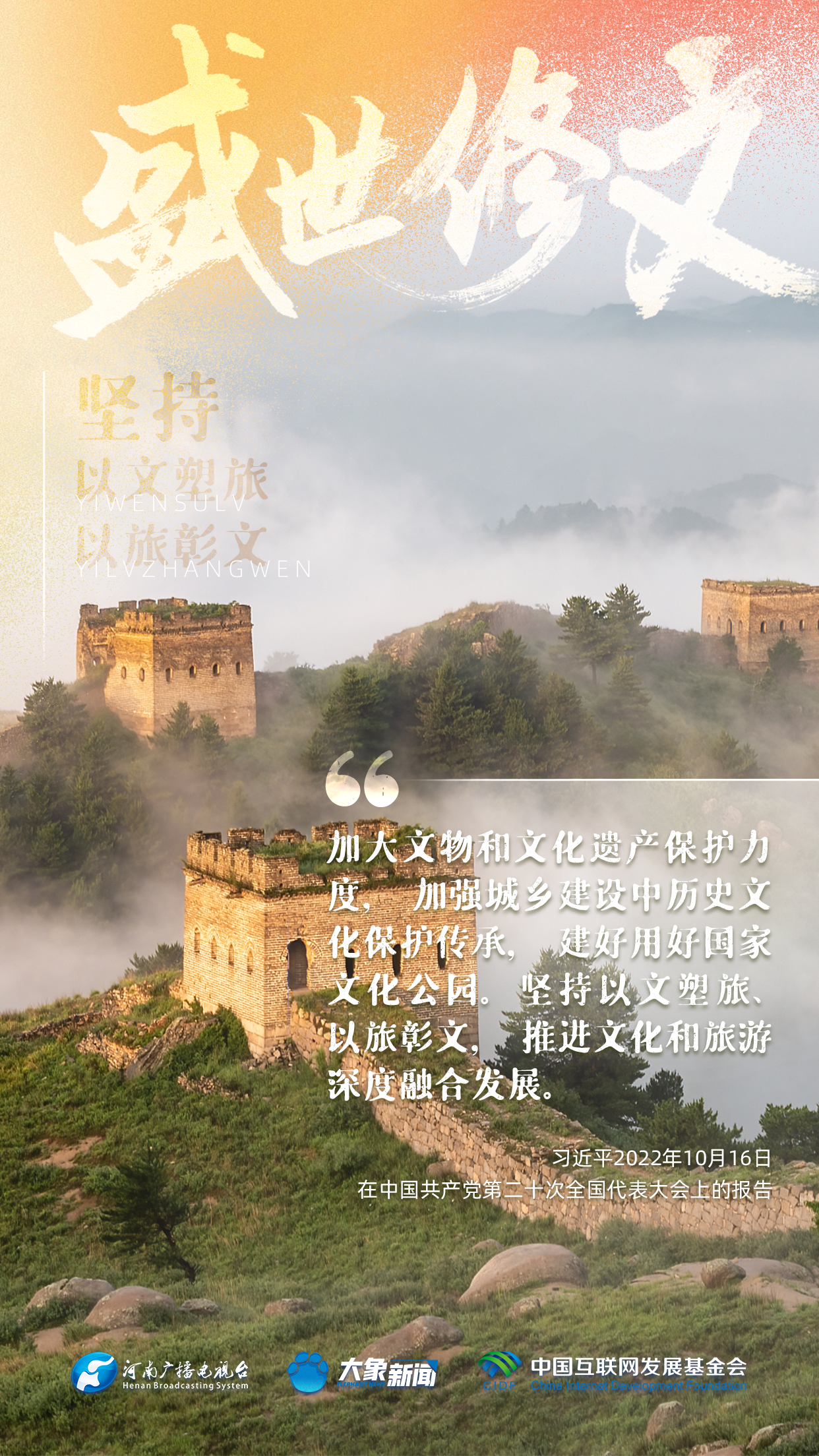 今天推出:習(xí)近平文化思想金句之《盛世修文|堅持以文塑旅、以旅彰文》