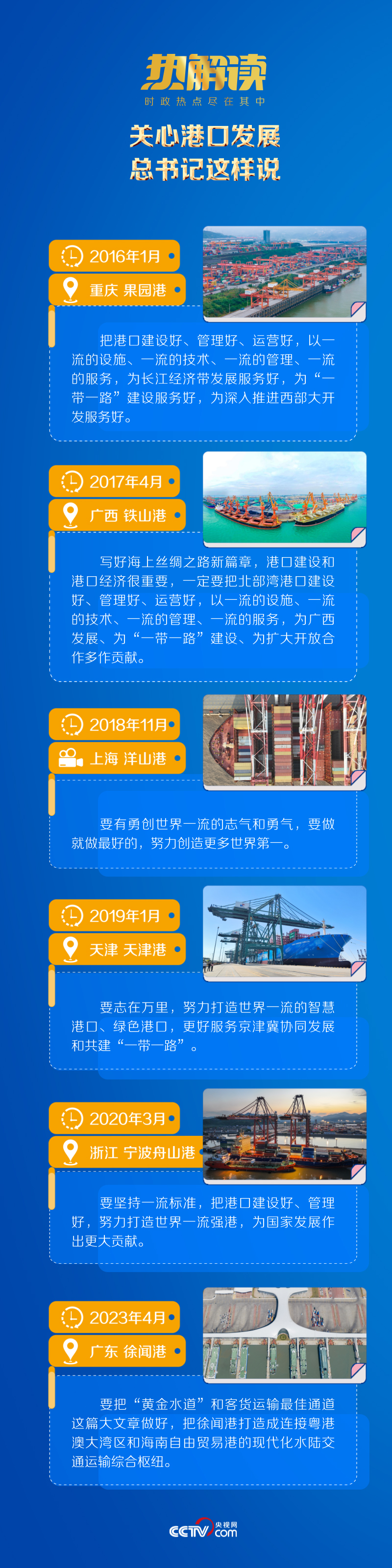 從內(nèi)河航運的黃金水道到國際航運的港通四海,總書記多次在考察行程中關(guān)注我國沿海沿江港口建設(shè),精心謀劃推進(jìn)世界一流強港建設(shè)工作。