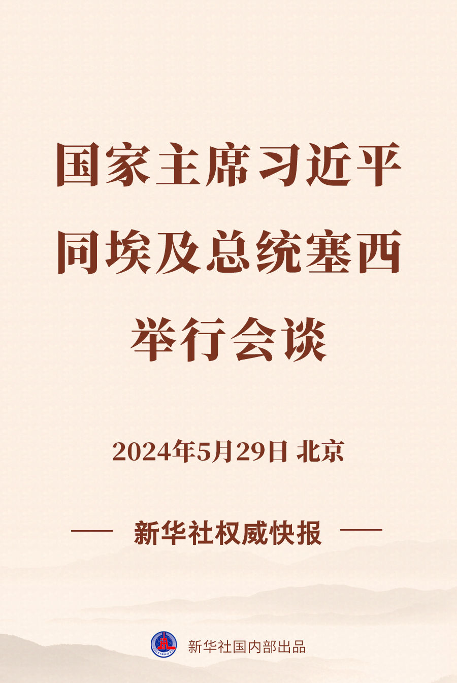 5月29日下午,國家主席習(xí)近平在北京人民大會堂同來華進行國事訪問的埃及總統(tǒng)塞西舉行會談。