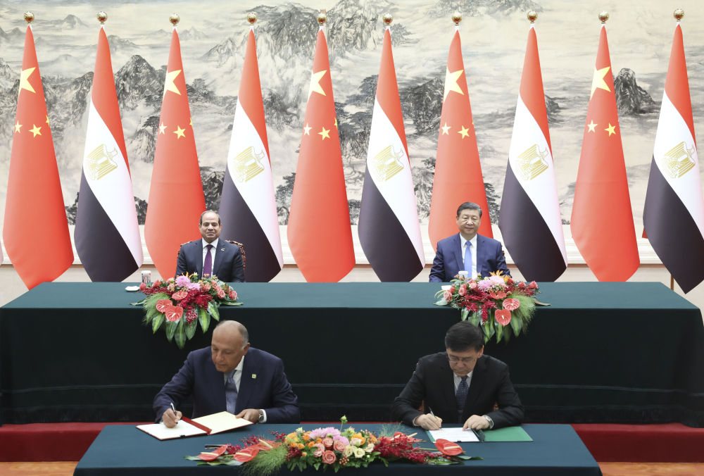 雙方發(fā)表《中華人民共和國(guó)和阿拉伯埃及共和國(guó)關(guān)于深化全面戰(zhàn)略伙伴關(guān)系的聯(lián)合聲明》。