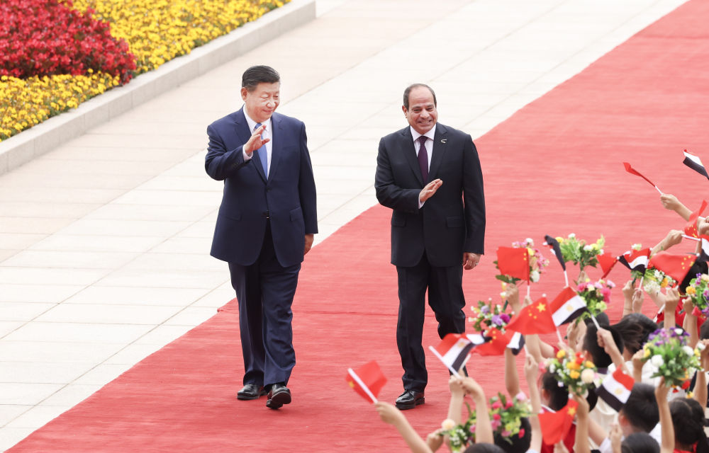 會(huì)談前,習(xí)近平在人民大會(huì)堂東門外廣場(chǎng)為塞西舉行歡迎儀式。